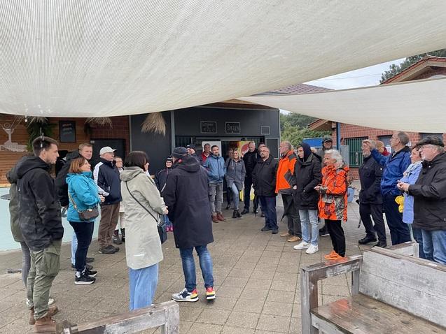 Mit einem Planwagen ging es zuerst vom TVB Treff zum Wassersportzentrum. Dort gab es allehand Infos von unserer Geschäftsführerin Britta und 1. Vorsitzende Gabi für unsere sehr interessierten Gäste. Eigentlich sollte es von dort aus per Boot weitergehen, mit einer Rundfahrt über den Tenderingssee am Tauchereinstieg vorbei zum Strandbad. Aufrgund des schlechten Wetters und des starken Windes ist unsere Bootsfahrt leider ins Wasser gefallen.