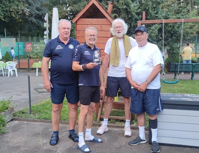 Die Herren 65 des TVB haben sich in einem spannenden Finale gegen den Meidericher TC 03 mit 2:1 durchgesetzt und dürfen sich Bezirkspokalsieger 2024 nennen. Zur siegreichen Mannschaft gehören Hartmut Eimers, Burkhard Kobbert, Rüdiger Wegener und Hermann Spickermann. Das Doppel Wegener/Spickermann setzte sich dabei souverän mit 6:1 und 6:2 durch und sorgte schnell für den ersten Punkt. Mannschaftsführer Hartmut Eimers blieb es dann vorbehalten, nach einem engen Match den noch fehlenden zweiten Punkt einzufahren. Nach mit 1:6 deutlich verlorenem ersten Satz, gewann er den zweiten Satz mit 6:3 und setze sich letztendlich hauchdünn mit 10:8 im Matchtiebreak durch. Burkhard Kobbert verlor sein Match knapp mit 6:4 4:6 und 4:10 im Matchtiebreak.