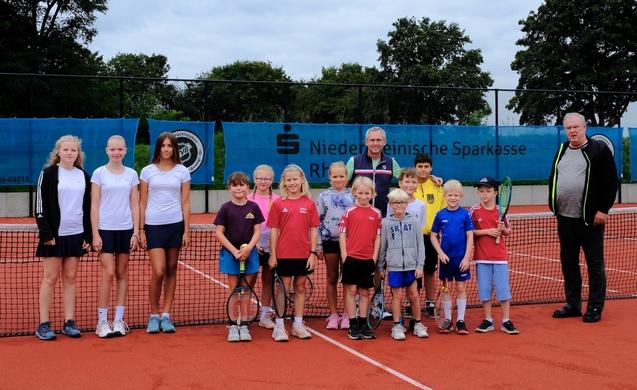Die Tennisabteilung des TV Bruckhausen hat am 24.08.2024 ein vereinsinternes Kinder- und Jugendturnier mit Unterstützung der Niederrheinischen Sparkasse RheinLippe durchgeführt. Knapp 20 Kinder und Jugendliche haben das Angebot genutzt und waren bei bestem Sommerwetter mit Eifer und Spass unter Leitung von Trainer Szabolcs Szöke dabei. Auch einige Eltern hatten den Weg auf die Tennisanlage in Bruckhausen gefunden, um die Tenniskünste des Nachwuchses zu beobachten. Dazu konnten die Teilnehmer*innen in den Spielpausen ihr Geschick beim Kickern und Tischtennis unter Beweis stellen, was ebenfalls regen Anklang fand.