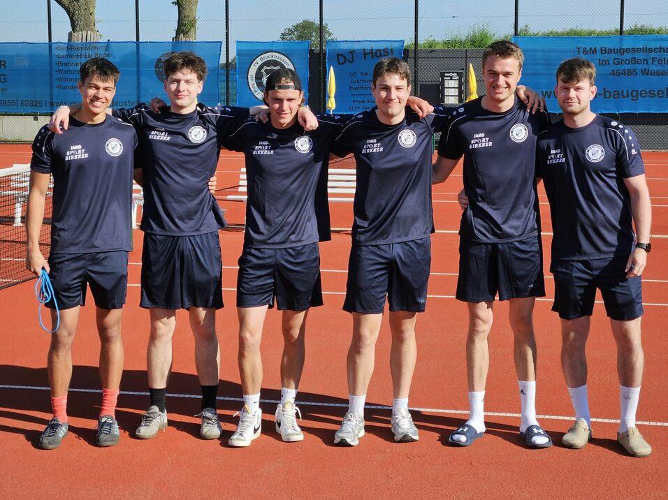 Nach Siegen gegen RW Möllen (4:2), Jahn Hiesfeld (5:1) und TC Wesel-Büderich (4:2) gab es im finalen Saisonspiel ein 3:3 gegen den TV Rhede. Für die Punkte im letzten Spiel sorgten Udo Hans, Hermann Spickermann und das Doppel Burkhard Kobbert/Hermann Spickermann. An der Meisterschaft beteiligt waren Hartmut Eimers, Burkhard Kobbert, Udo Hans, Rüdiger Wegener und Hermann Spickermann.